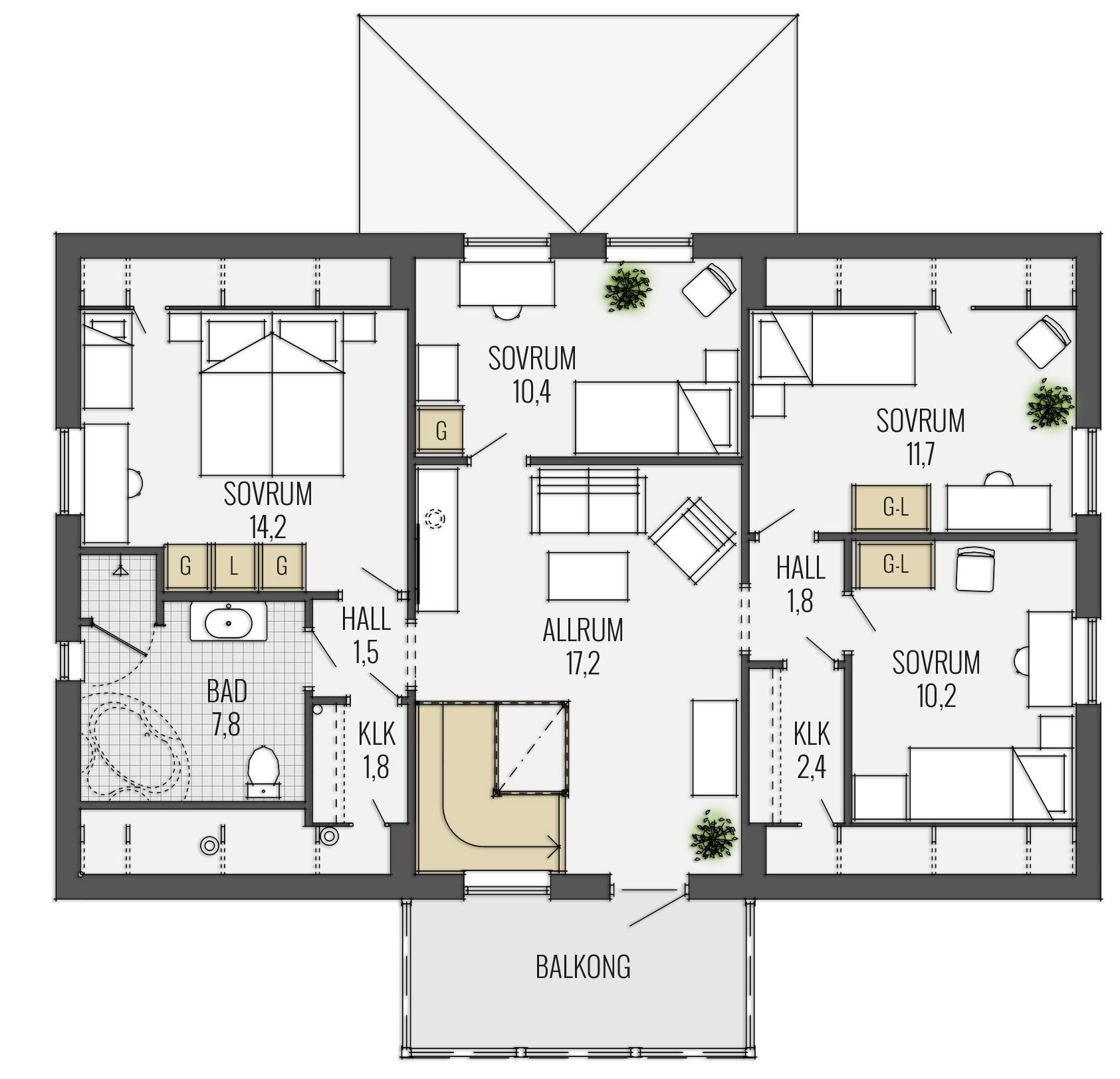 Lönneberga ist ein Haus für Menschen, die die Vergangenheit lebendig halten wollen. Ein Landhaus aus den Jahren des späten 18. Jahrhunderts. Die aufwendigen, schönen Holzarbeiten prägen den Charakter des Hauses in besonderer Weise. Die Details der Profilholzfassade mit Deckelschalung, der erhöhte Kniestock, die für diese Zeit typischen Sprossenfenster und ihren Einfassungen, sind Zeitzeugen dieser Epoche. Lönneberga, ein Klassiker mit Satteldach und großer Gaube.