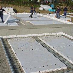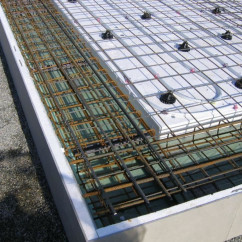 Die Kantenelemente sind passgenau und lassen sich einfach und schnell verlegen. Es ist möglich, die Kantenelemente den geplanten Vorgaben, wie Fußbodenbau und Geländehöhe anzupassen. Maßgenauigkeit ist selbstverständlich, da die Elemente nach Verlegeplan zementier genau vorgefertigt werden. Die innere Füllplatten werden untereinander und mit den Kantenelementen mittels Kunststoffnägel verbunden, um Verschiebungen der Kantenelemente beim Betonieren auszuschließen.